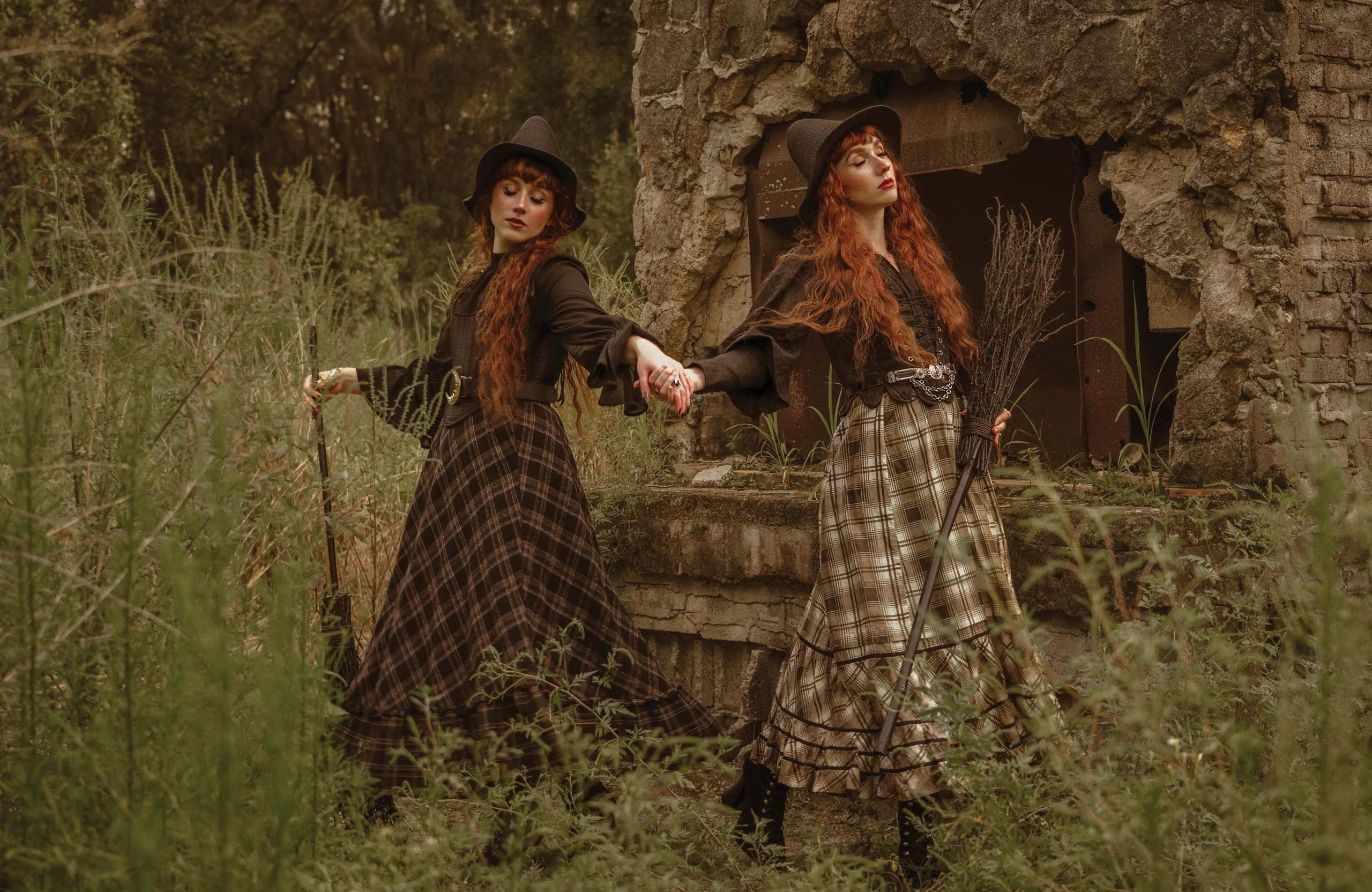 B&P: Our great-great-grandmother Myrtle was a medicine woman in remote West Virginia. She would traipse through the surrounding woods of the Appalachian Mountains to forage for herbs and concoct medicinal remedies for the impoverished people in her community. We like to think of her as a wise herbalist who used her skills to help others, and we take inspiration from that, knowing we have that ancestry. We like to connect with nature, be it walking in the woods to see if we can spot wild horses or admiring the stars and a beautiful full moon. Witches have appeal in that they have a fierce feminine energy. The power they possess is palpable and inspiring, especially in this modern world where magic seems to have fled. It is intriguing to bring that magnetism to life through photography.