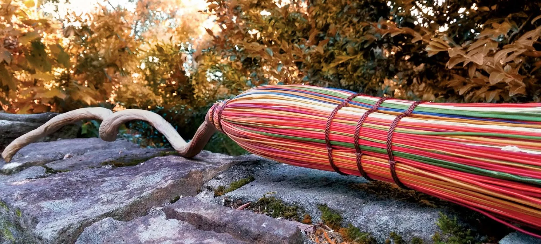 “Harvesting vine-twisted saplings is good stewardship, as being girdled by vines is detrimental to the health of the trees. I also harvest crooked saplings. I’ve made a few whisk brooms using antlers for handles. The antlers were naturally shed ones, found in the same woods as my sapling handles.”