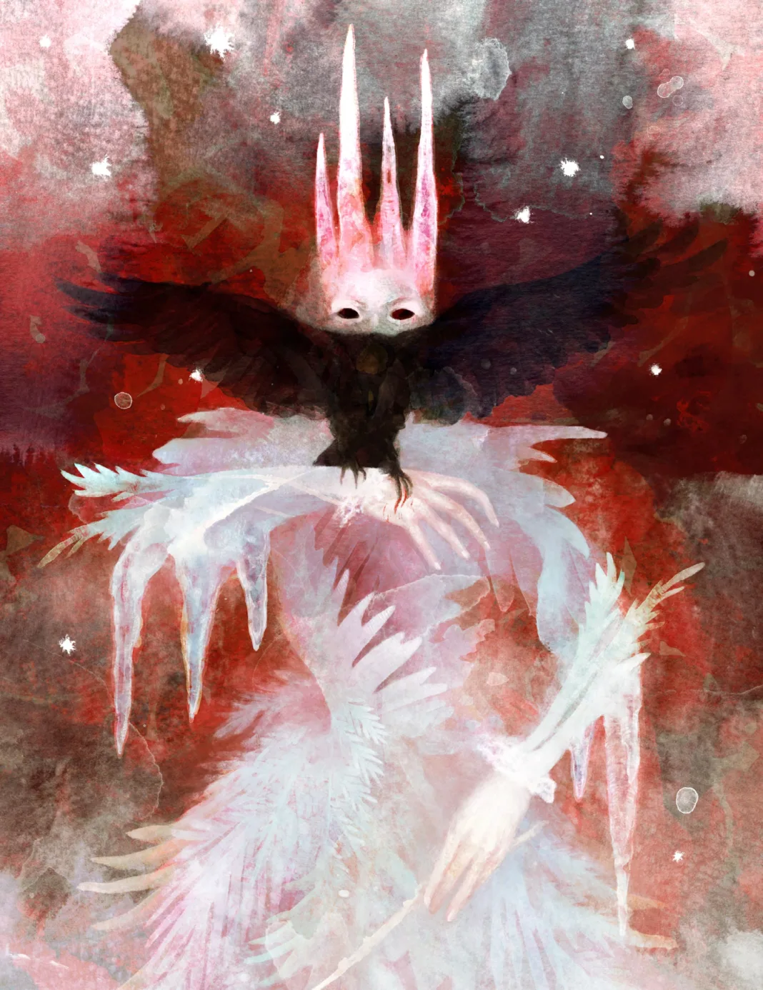 Together, we searched for owl feathers that told us the secrets of the stars and we braided each other’s hair with red ribbons. I loved the girl more with each passing moon, but the longer I kept the fire ablaze for her, the more my frozen heart began to thaw. When my heart was frozen no more, the winter winds led me away from the flames, took me in their cold embrace, and placed me gently in an ice coffin so delicate it looked as though it were made of glass.