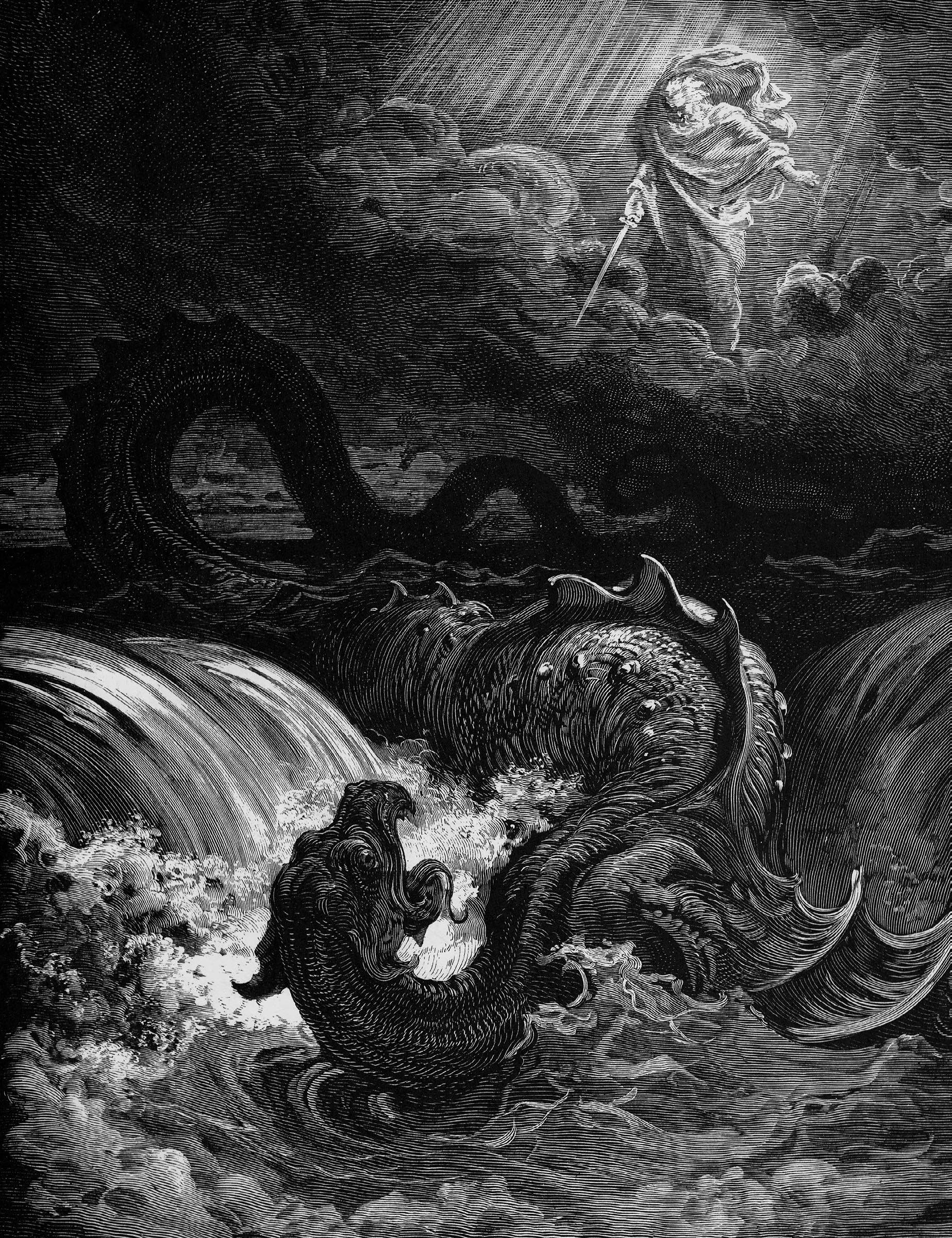 You already know him by reputation—one of the most wondrous things God ever made, with unbreakable scales, fiery breath, and a chip on his shoulder about his first wife’s death. He slithers through several books of the Hebrew Bible, eating a whale a day, boiling the sea with the heat of his malodorous breath, poking his horns out of the water and threatening the Israelites.