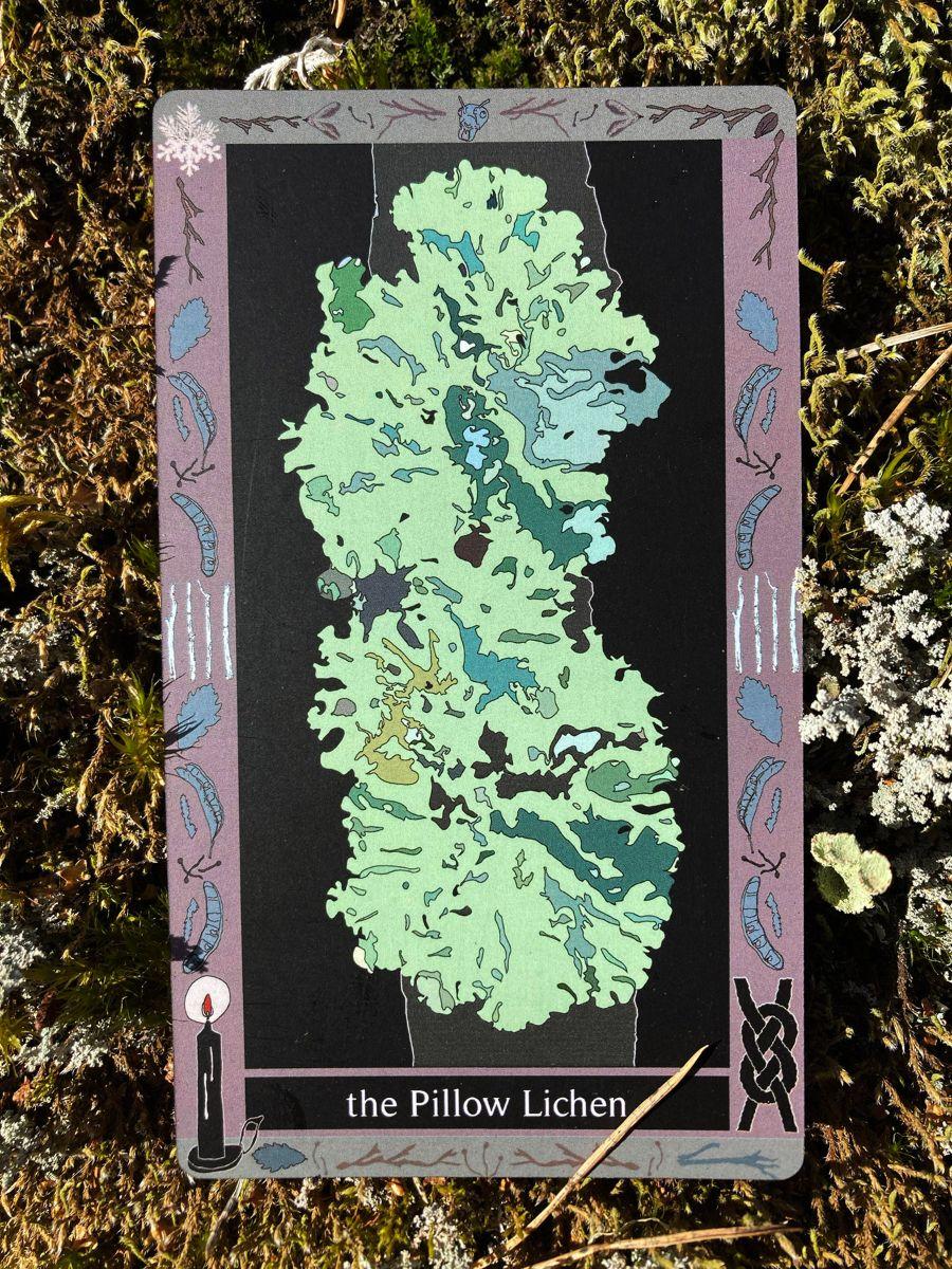 Maybe by now you too, dear reader, are sensing “the uncanny”. I do every time I read with this deck (Is it why I can’t read with it often? Too real, too much, too raw?) The Pillow Lichen is, like the other lichens in the deck, a card of partnership. This specific lichen indicates a unique habitat or engagement of great longevity and complexity. I could only hope for such a relationship with Glowwood — union, strong partnership, synergy, resourcefulness. Reassuring!