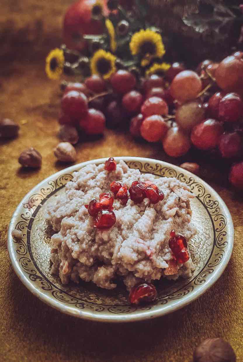 (That he also feeds the skin with essential vitamins and minerals does not go unmentioned, mind you.) Voluptuous grape shimmies over, to chime in with her wild tales of Dionysian romps—possibly exaggerated—and her legendary powers of bestowing ageless beauty. Pomegranate overhears, turns, and winks, coyly flashing a glimpse of the rubies beneath his burgundy coat. Oh, he has a few witticisms about being used as currency in ancient Egypt and that time his likeness ended up inside a pharaoh’s tomb. Did he mention that he strengthens the proteins that form collagen and elastin? Of course he did. Not to be outdone, hazelnut chimes in, noting that in addition to his renowned wisdom, he is also highly regarded as a protector. Oh, and yes, he provides much vitamin E to give the recipient firm, plumped, hydrated skin.