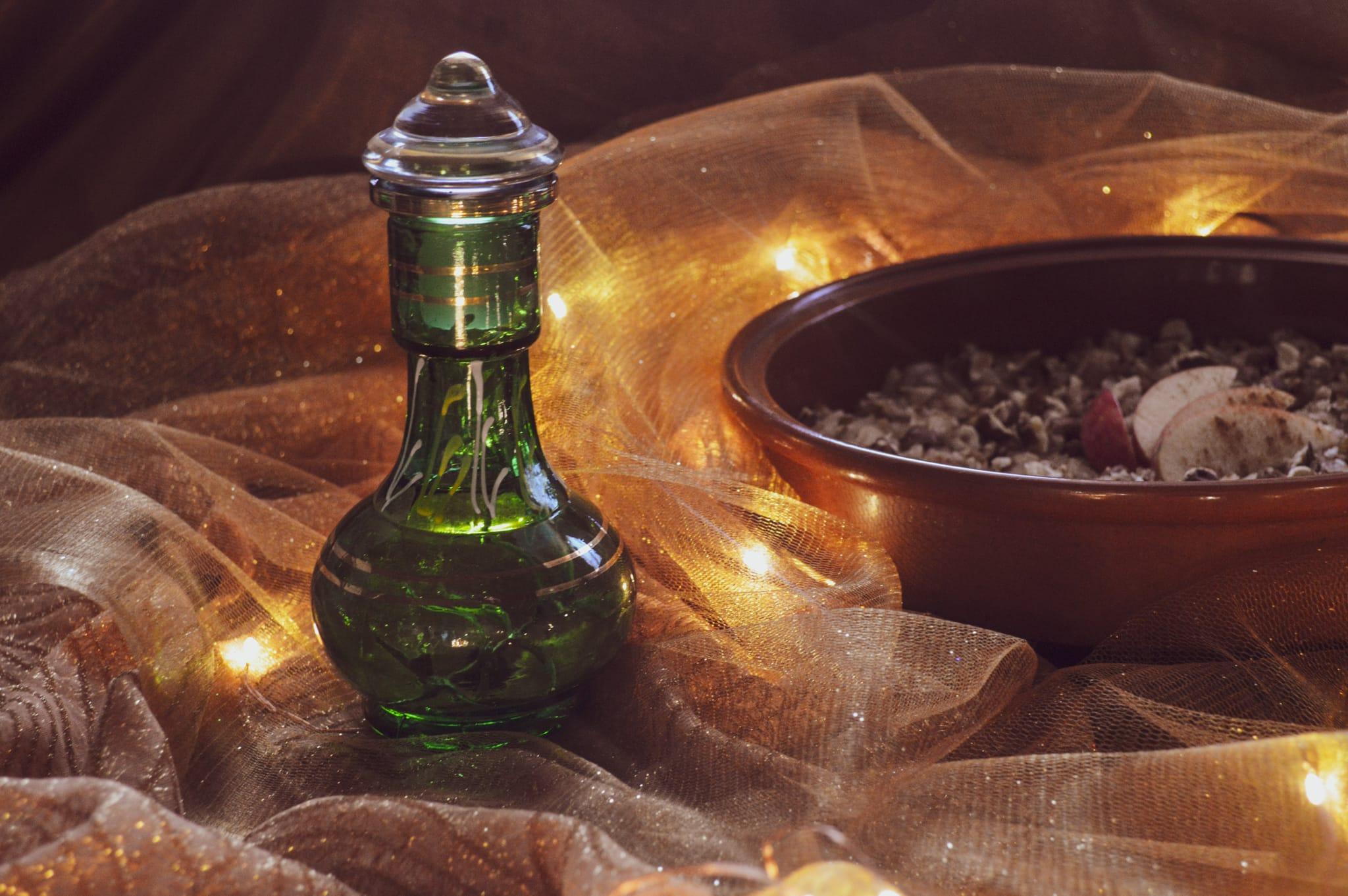 Early in the eve of the Full Moon, when she is also in Pisces, pour the grapeseed oil into a beautiful colored glass vessel. Be sure to use one that has a lid, cap, or cork. As you tap into Neptune’s dreaminess, feel yourself consciously detach from the physical world and elevate to a higher spirituality. Ask for the signs to appear, the ideas to come – and remember, they will most likely appear when you least expect it in the coming days, when you are doing mundane tasks. Surprise gifts in many forms can appear to help you, but you must be tuned in to recognize them. Add each oil to the potion, one at a time, while connecting with its individual vibration, and what it brings to the blend as a whole. Give it a good clockwise swirl 13 times, cap it, then let it rest in the moonlight either outdoors or in a window. It will assist you in ritual that evening or the following, but can also work as its own spell.