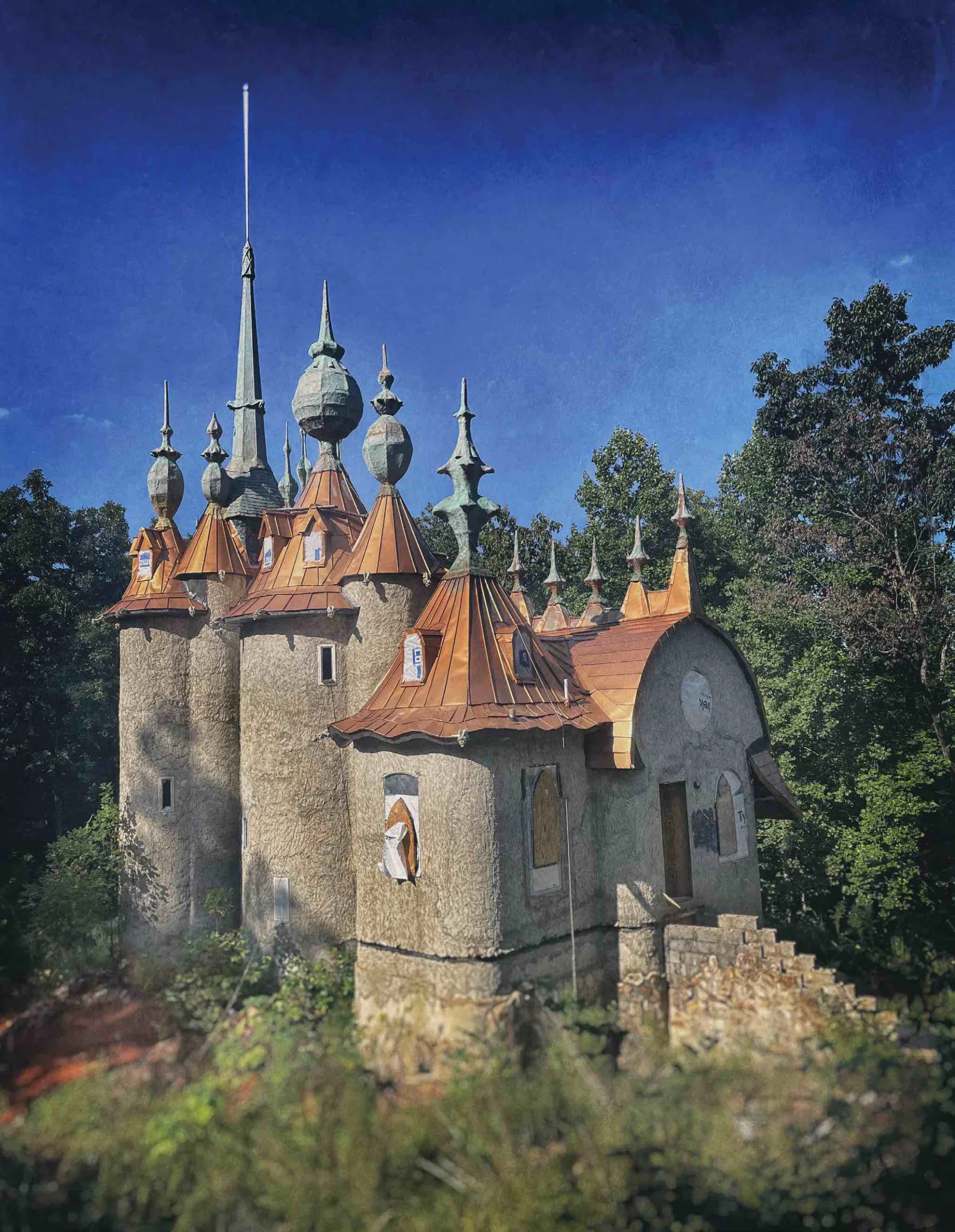 When art director Lisa Gill showed me an Instagram post about Castle Mont Rouge—an unfinished real-life castle with soaring spires that lives in the wilds of North Carolina, a castle-less state if there ever was one—I insisted we had to see it for ourselves. In fact, as the ladies with the most hands-on jobs in creating this enchantment-celebrating magazine, and as residents of North Carolina, as it happens, I felt it was our duty. Luckily, artist Robert Mihaly responded to my missive and agreed to show us his astonishing creation in person.