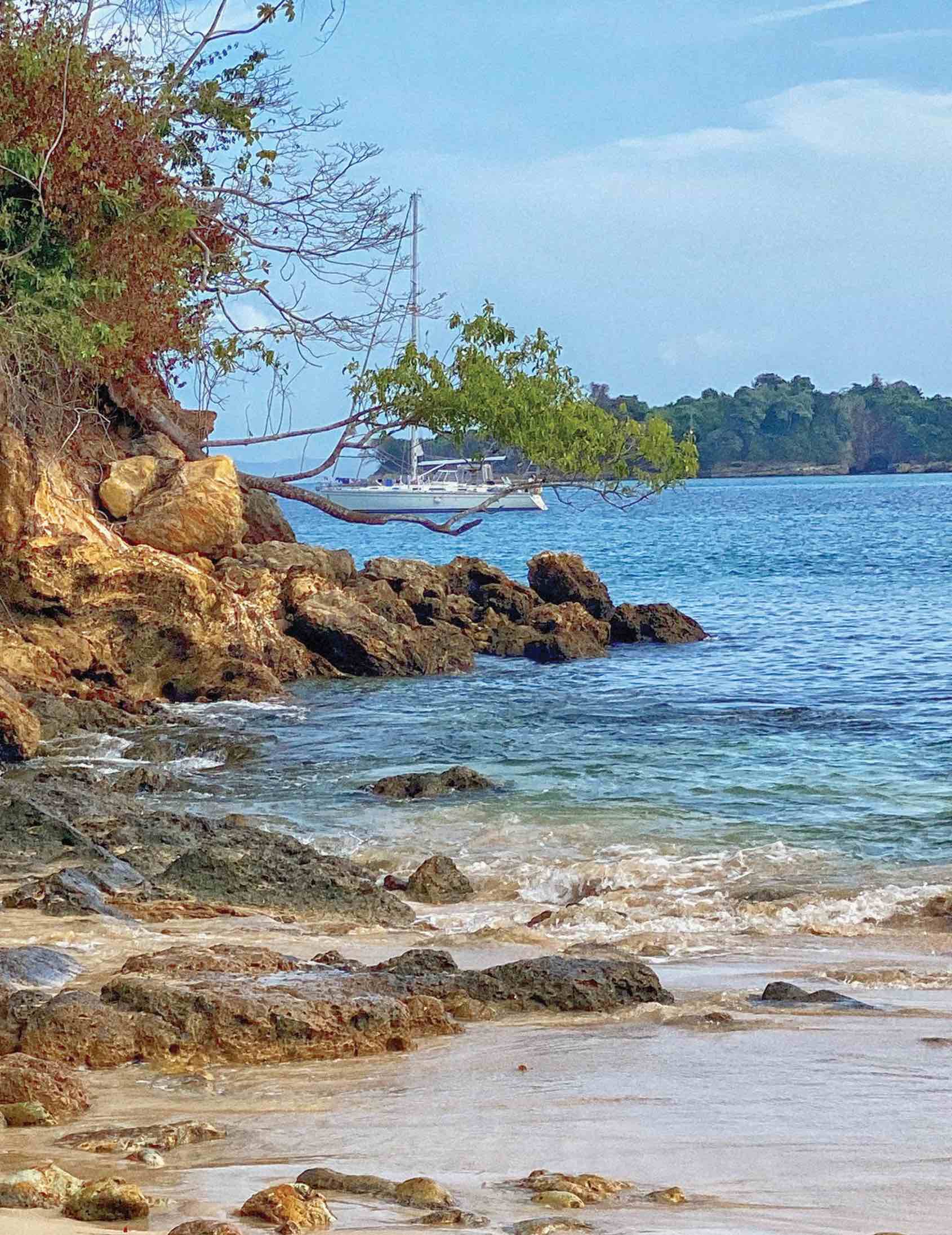 On a regular day in January, breakfast was pancakes with canned peaches, then a bit of school, and a shore adventure to explore yet another island that we have encountered. On this day, we prepared for a hike and fun at the beach after school. We loaded into our dinghies with our buddy boat (Lucky Girl from Scotland, which carries a lovely couple with two spritely little boys), and motored to shore to beach our dinghies and head inland. Since Covid, most towns are eerily empty, but a few locals with shops and trinkets line the streets, and there are some confused tourists, sunburned, wandering, looking about. We head up an alley and get asked in Spanish to keep our masks on as we walk. A man in a hut asks us if we want a trail. This may be the only word he knows in English. He points to some dirt behind his house.